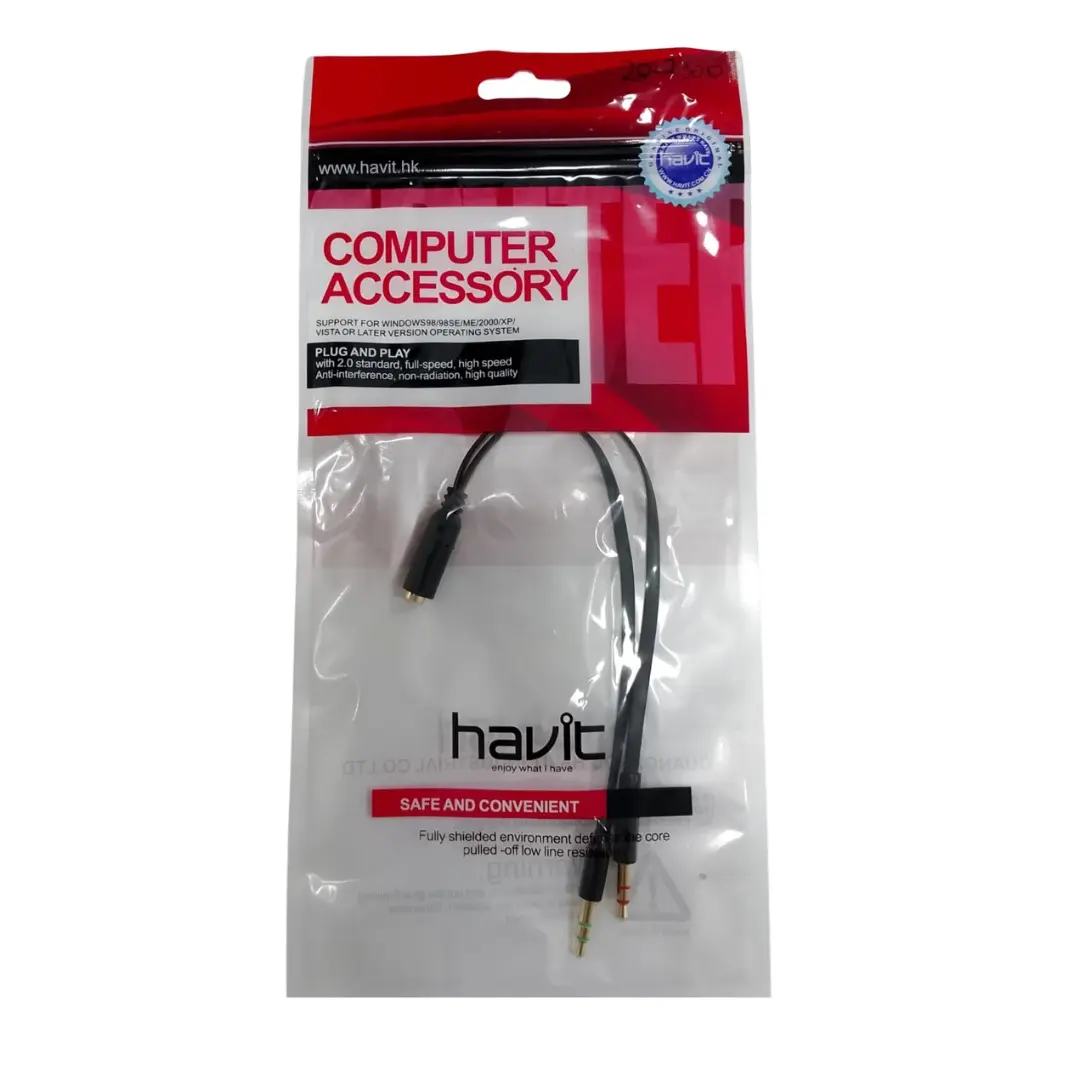 AUX TRRS 2 MACHO A 1 HEMBRA (TRS A TRRS) 3.5MM P2 HAVIT