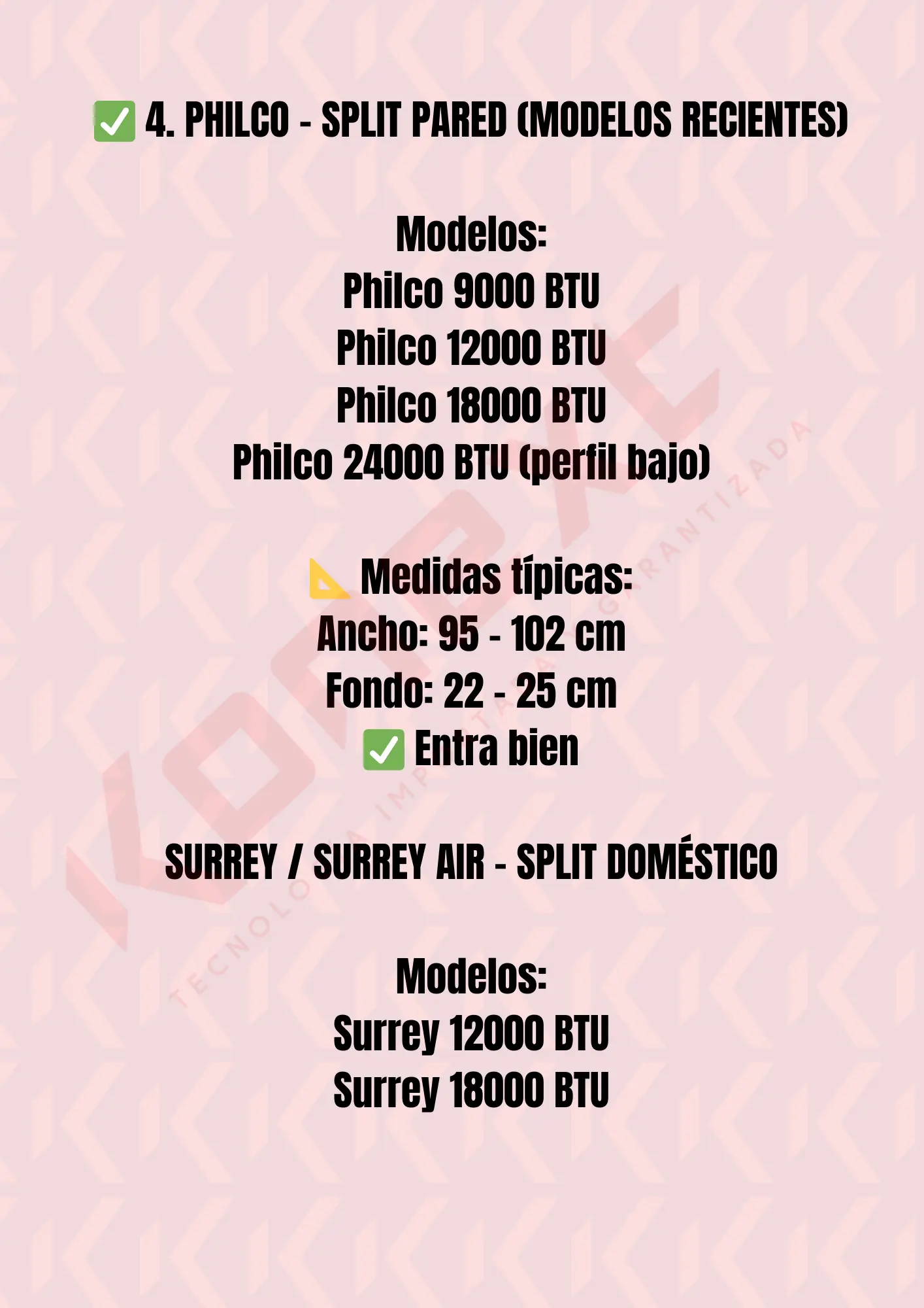 | Philco | 9000 · 12000 · 18000 · 24000 BTU (perfil bajo) |