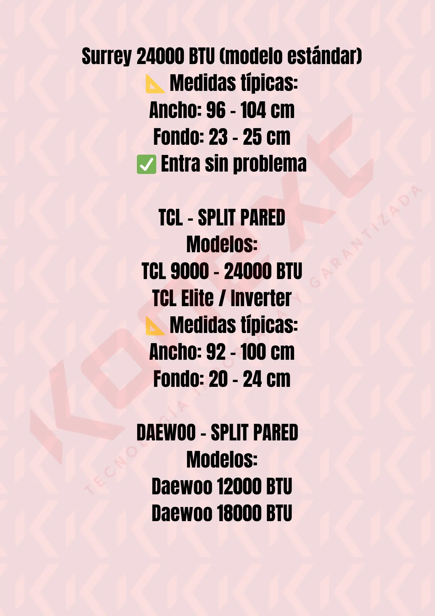 | Daewoo | 12000 · 18000 · 24000 BTU (modelos delgados) |