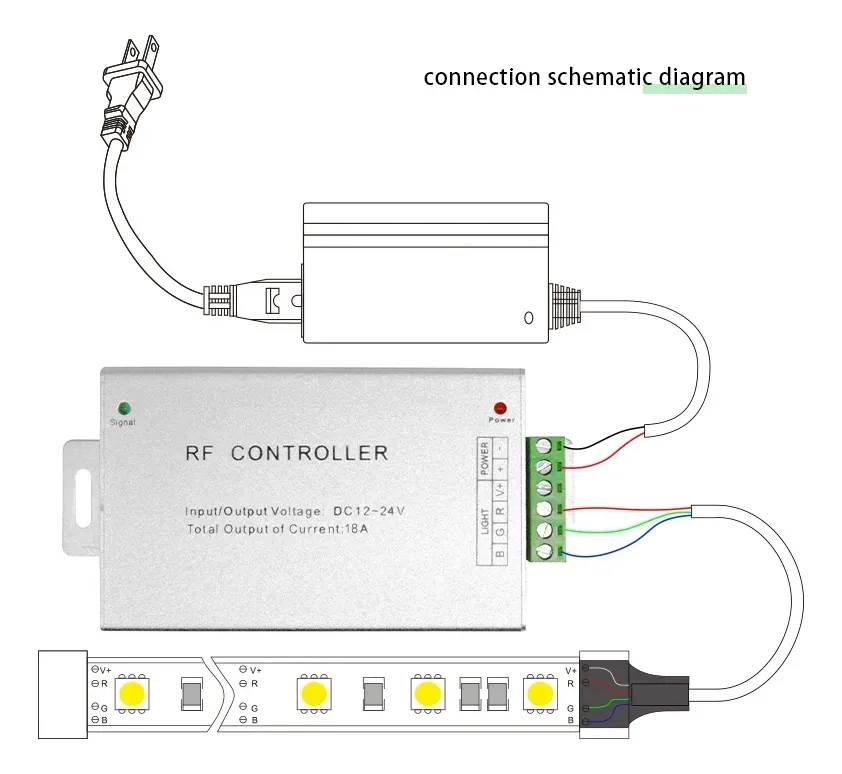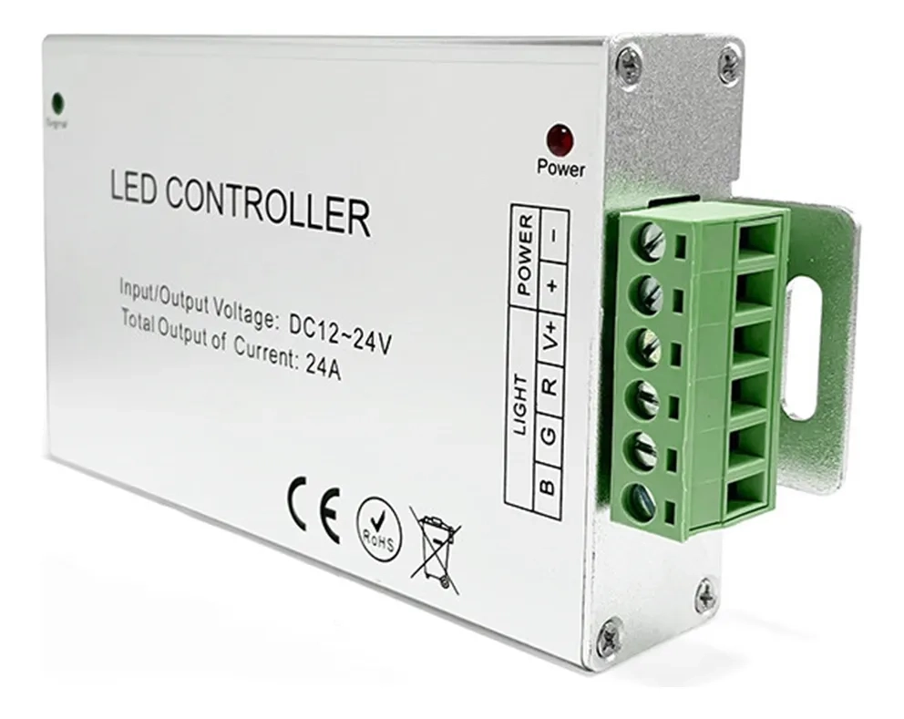 El Controlador RGB CYCD-12 es un dispositivo electrónico diseñado para gestionar y regular el funcionamiento de cintas o luminarias LED RGB de baja tensión (12V o 24V). Utiliza un sistema de control inalámbrico por radiofrecuencia (RF) que permite cambiar colores, efectos y brillo de manera práctica y sin necesidad de línea visual directa entre el control remoto y el receptor.