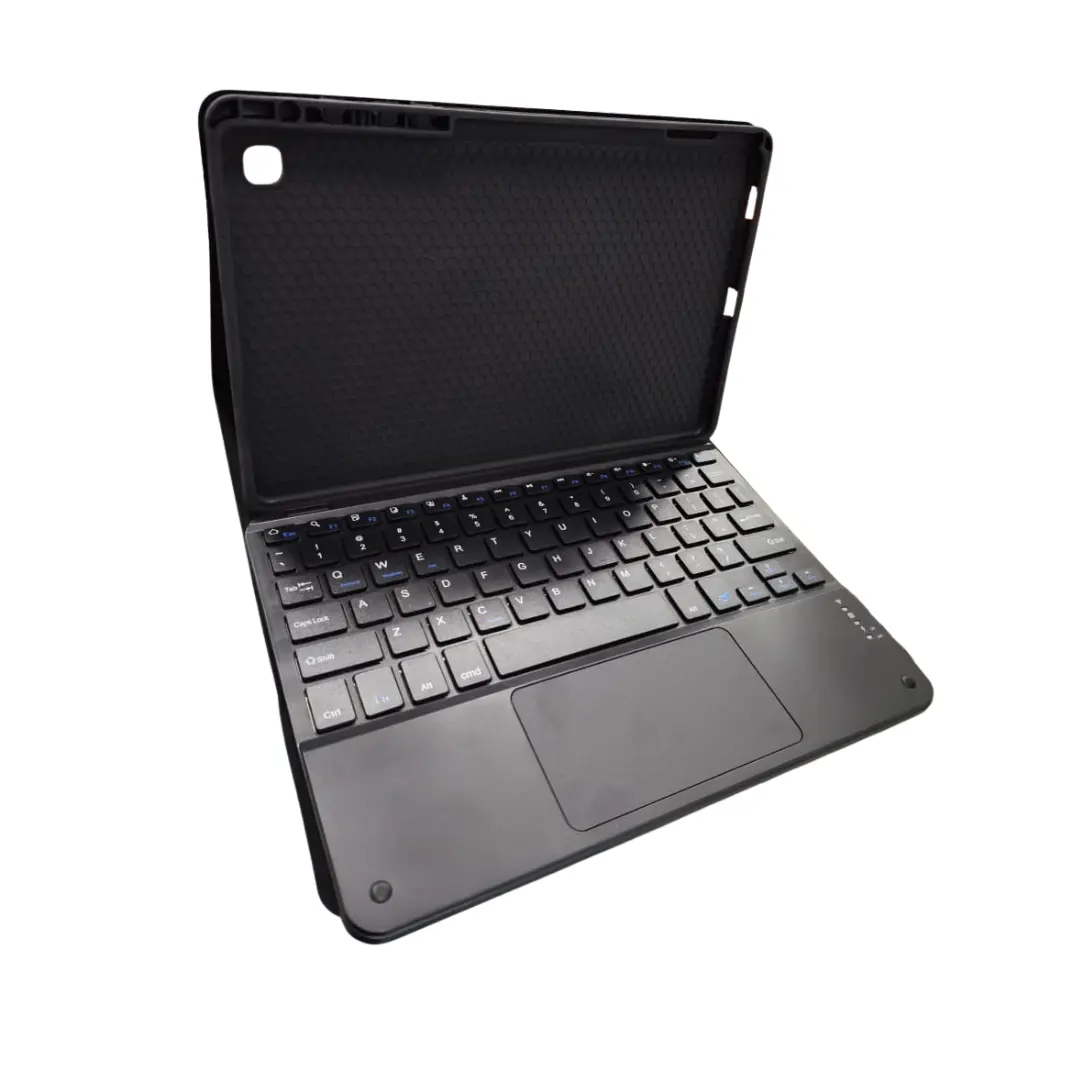 Mejora la funcionalidad y protección de tu tablet Samsung con este estuche con teclado en elegante color negro. Ideal para trabajar, estudiar o escribir con mayor comodidad en cualquier lugar.