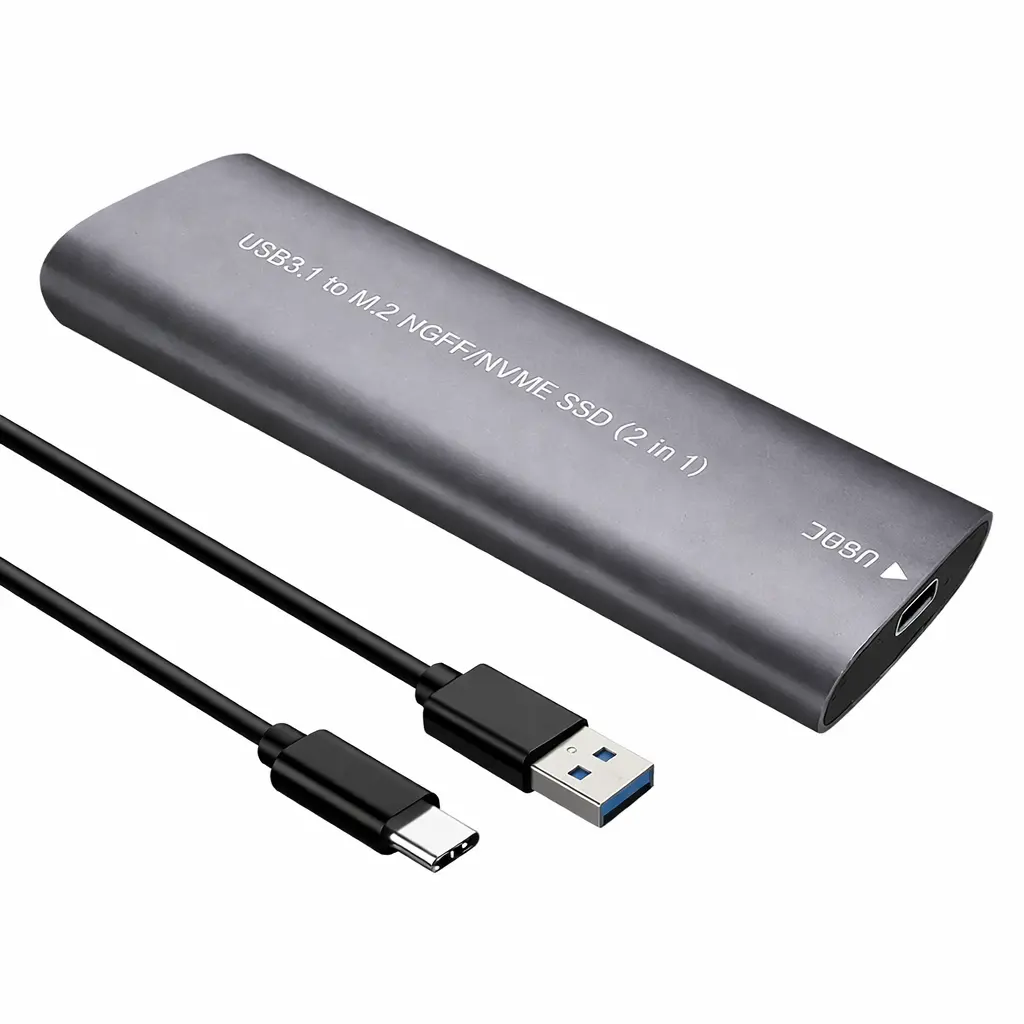 Gaveta NVME 2TB USB-C + USB-A M.2 SSD NGFF RTL9210B JMS583 2230 2242 2260 2280 ANDROID WIN 10 IOS USB 3.1